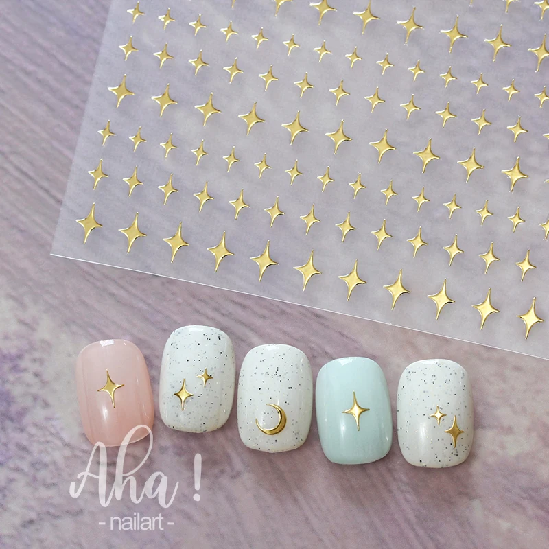1pc Sliver Gold Star Nail Art Stickers Y2K Charms Self-Adhesive Sliders Laser White Chrome Gel Polish Decals Kawaii Accesories