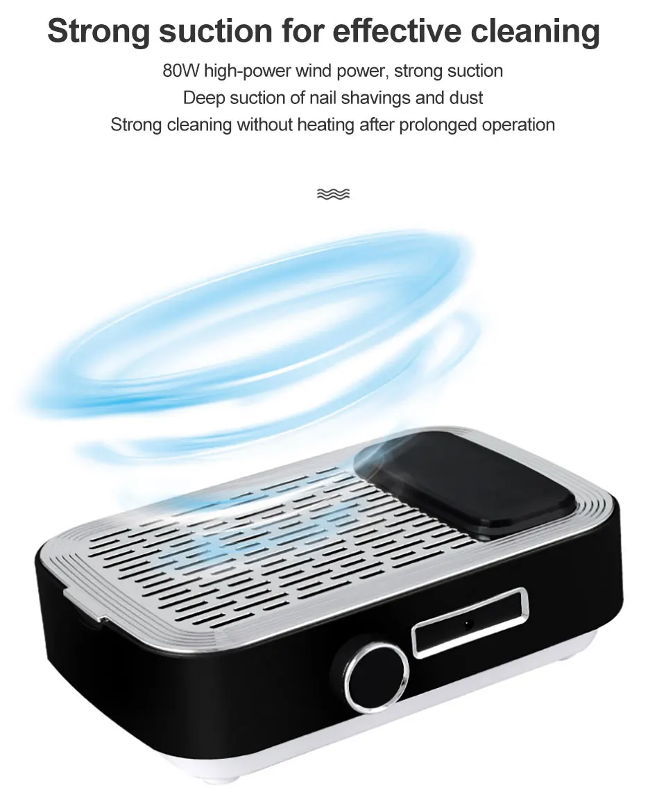 80W High Power Charge Nail Vacuum Cleaner Polish Gel Remover Pedicure Dust Absorber With Removable Filters Nail Salon Tool